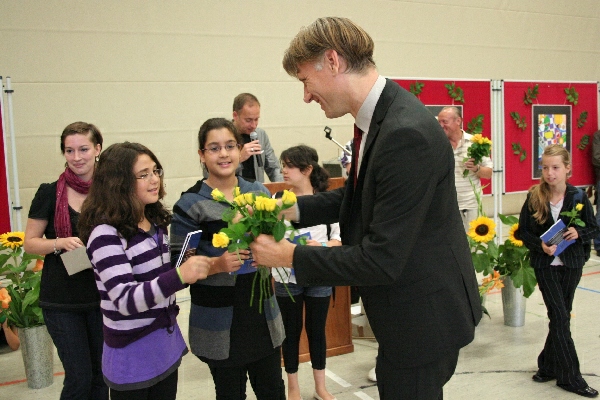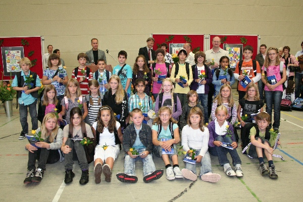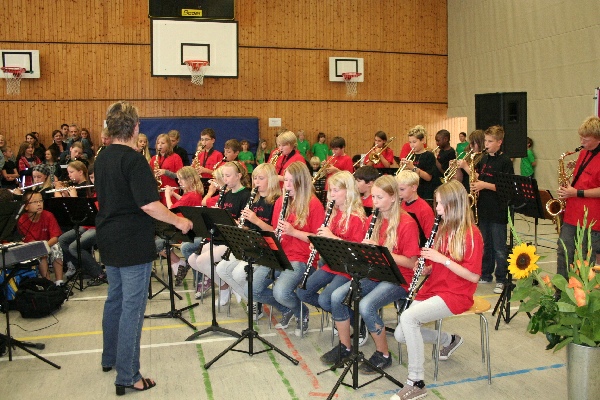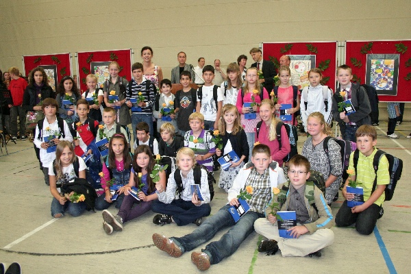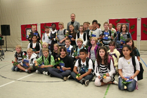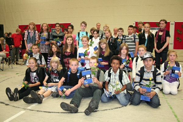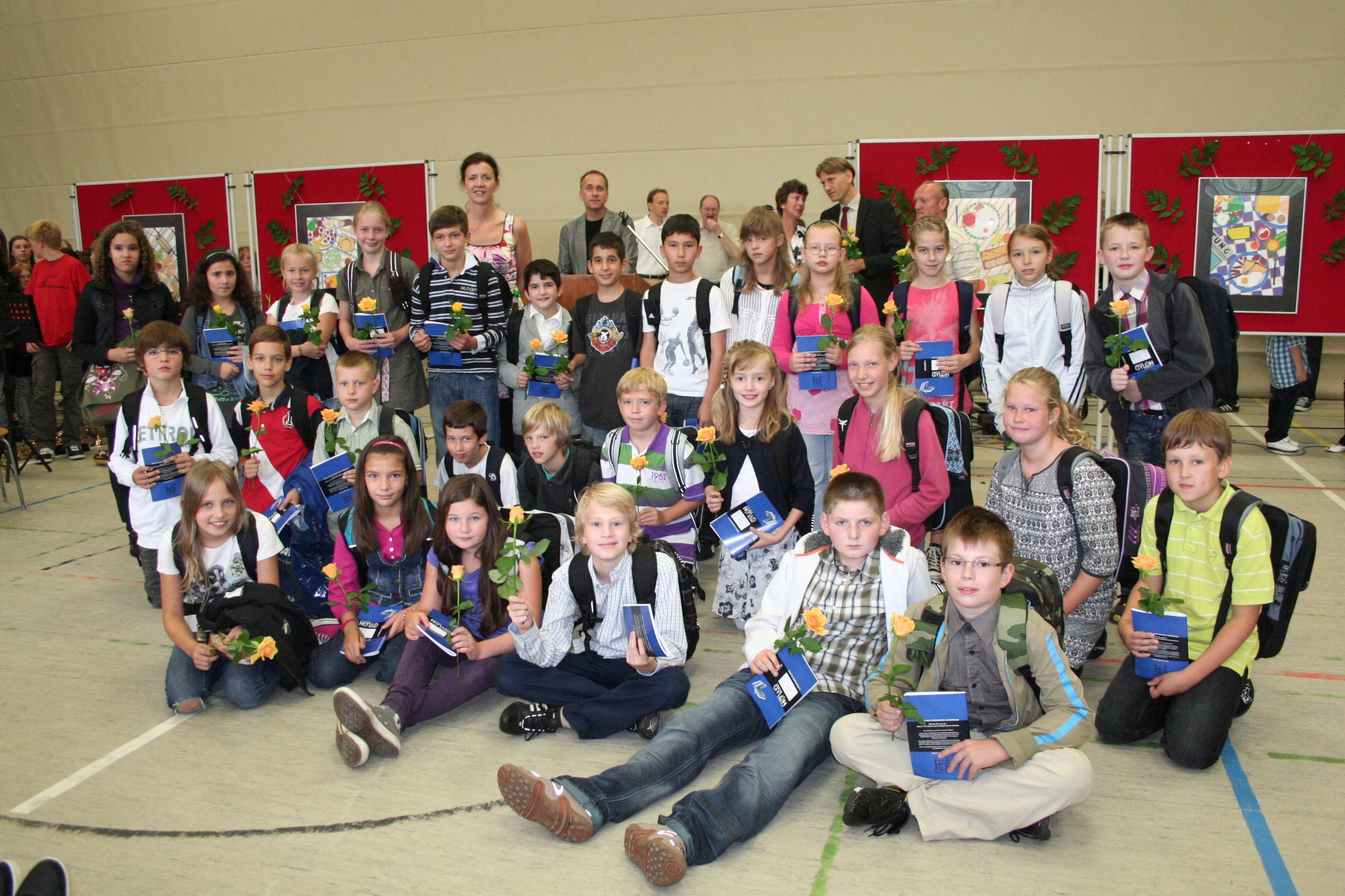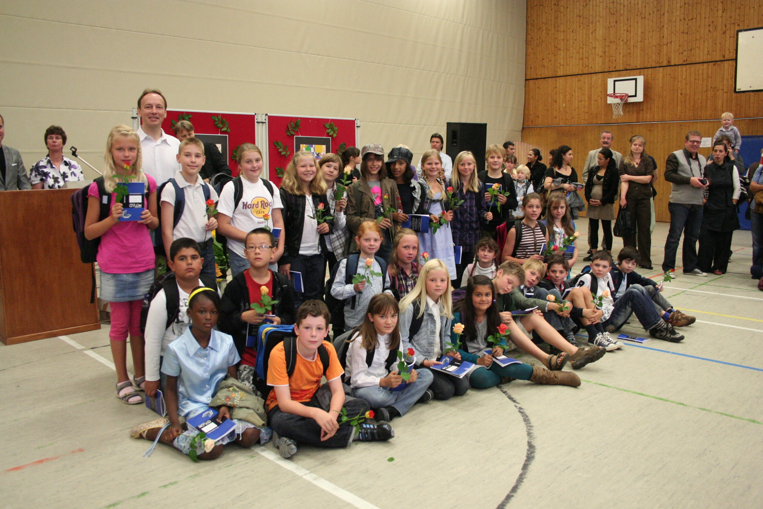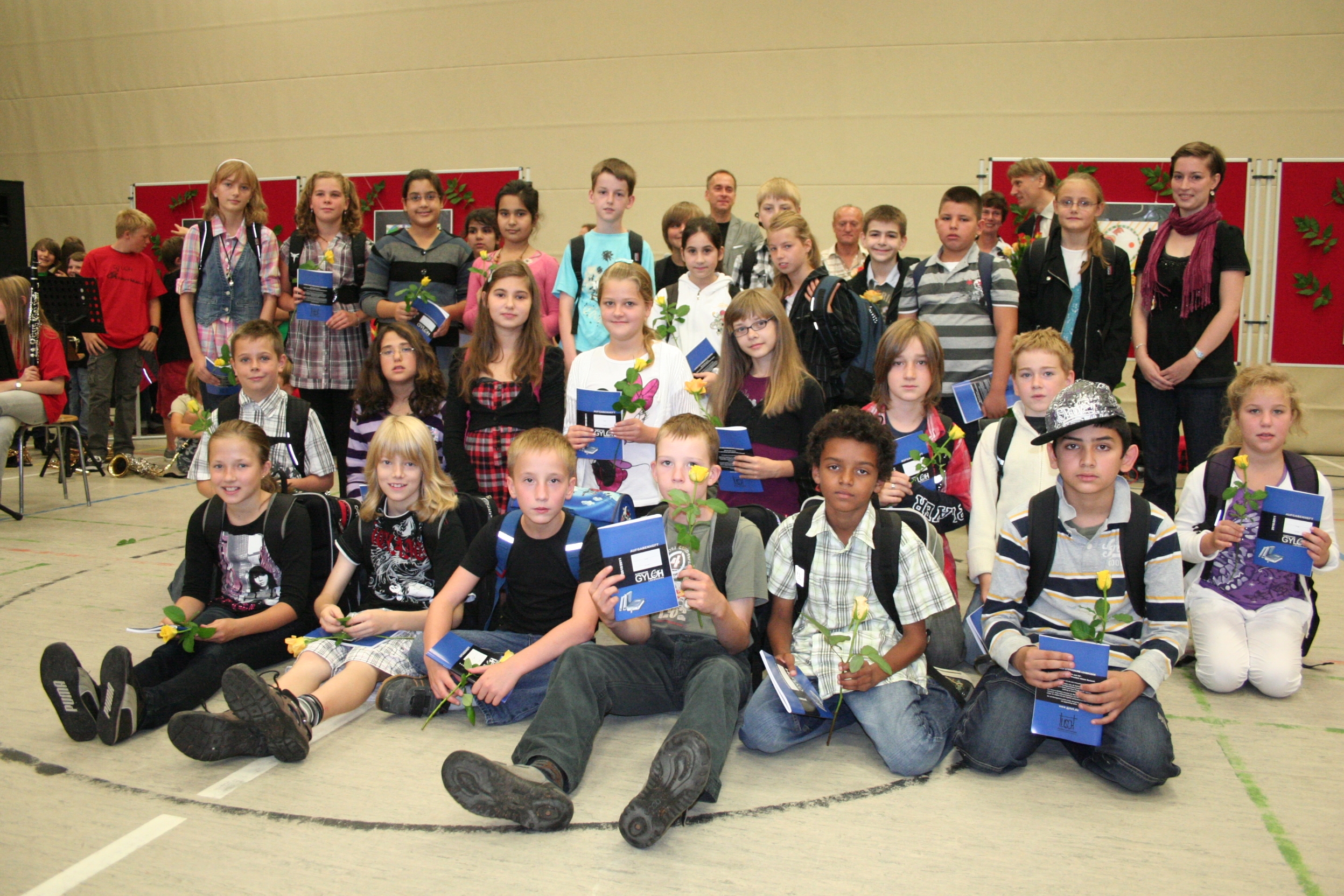 gut.Nach kurzen Ansprachen von Schulleiter Michael Koops und Unterstufenkoordinator Thomas Melzer wurden die Fünftklässler einzeln aufgerufen und von ihren Klassenlehrern in Empfang genommen. Das GyLoh-Heft und eine Rose durften natürlich auch nicht fehlen. Dazwischen gab´s Musik von den Bläserklassen der 6b1 und 6d (Leitung: Gunda Adermann). Und die zeigten wie schon die GyLoh Voices Junior den Kindern, ihren Eltern und Verwandten, was man bei uns unter anderem in ein paar Monaten so lernen kann: Auftrittsreif ein Instrument zu spielen und sehr professionell zu singen.