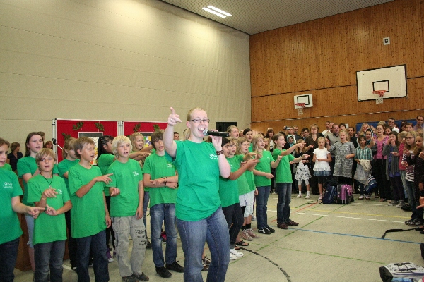 Auf der Einschulungsfeier sah man fröhliche und neugierige Gesichter.„Ich bin anders als du bist anders als ich bin anders als du“. Mit diesem Lied wurden unsere Jüngsten vom Unterstufenchor – den GyLoh Voices Junior – unter Leitung von Christiane Canstein begrüßt. Mitsingen durften sie auch gleich und das klappte schon ganz schön