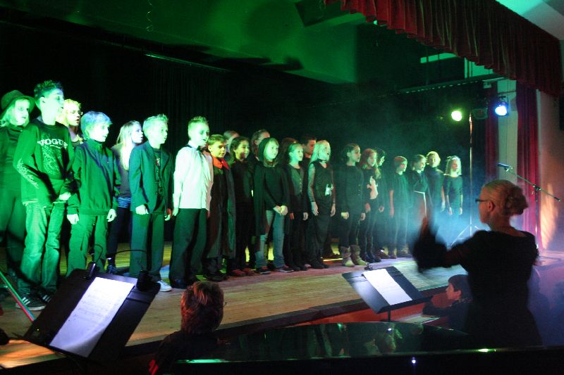 Dracula – oder der besiegte Vampir, so heißt das Stück, das mit viel Leidenschaft von den Musiklehrern und den erst kürzlich eingeschulten Schülern einstudiert wurde. In der bis auf den letzten Platz besetzten Aula zeigten alle Klassen ihr Können. Jeweils ein oder zwei Lieder trugen sie in kreativer Gruselverkleidung vor, dann folgte die nächste Klasse. Für diese tolle Leistung gab es den gebührenden Applaus von Eltern und Verwandten.