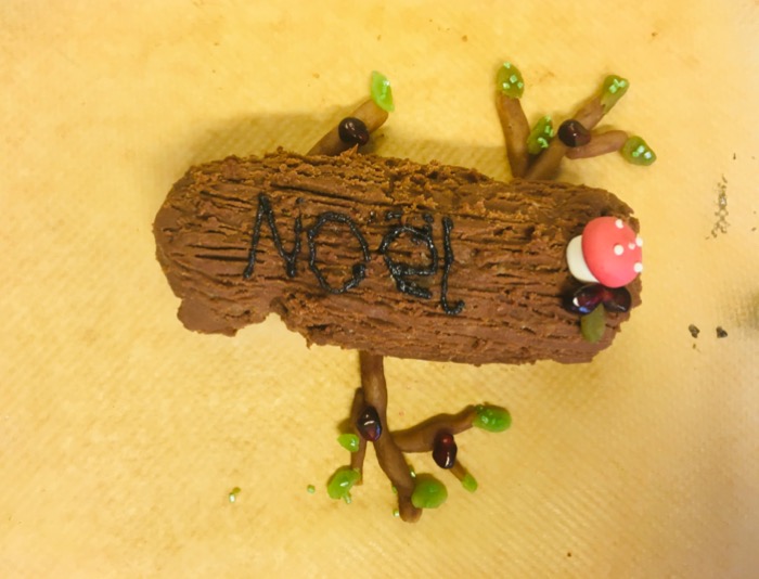 Um sich angemessen und à la française auf das Weihnachtsfest einzustimmen, dekorierten die Schülerinnen und Schüler des Französischkurses 6abd von Madame Oehler jeweils ihre eigene Bûche de Noël, den traditionellen Weihnachtskuchen in Frankreich in der letzten Unterrichtsstunde im Dezember. Bûche bedeutet übersetzt Holzscheit, dies erklärt auch die Form des Kuchens. Die Schülerinnen und Schüler waren mit großem Eifer, Spass und einem hohen Maß an Kreativität dabei und wünschen allen