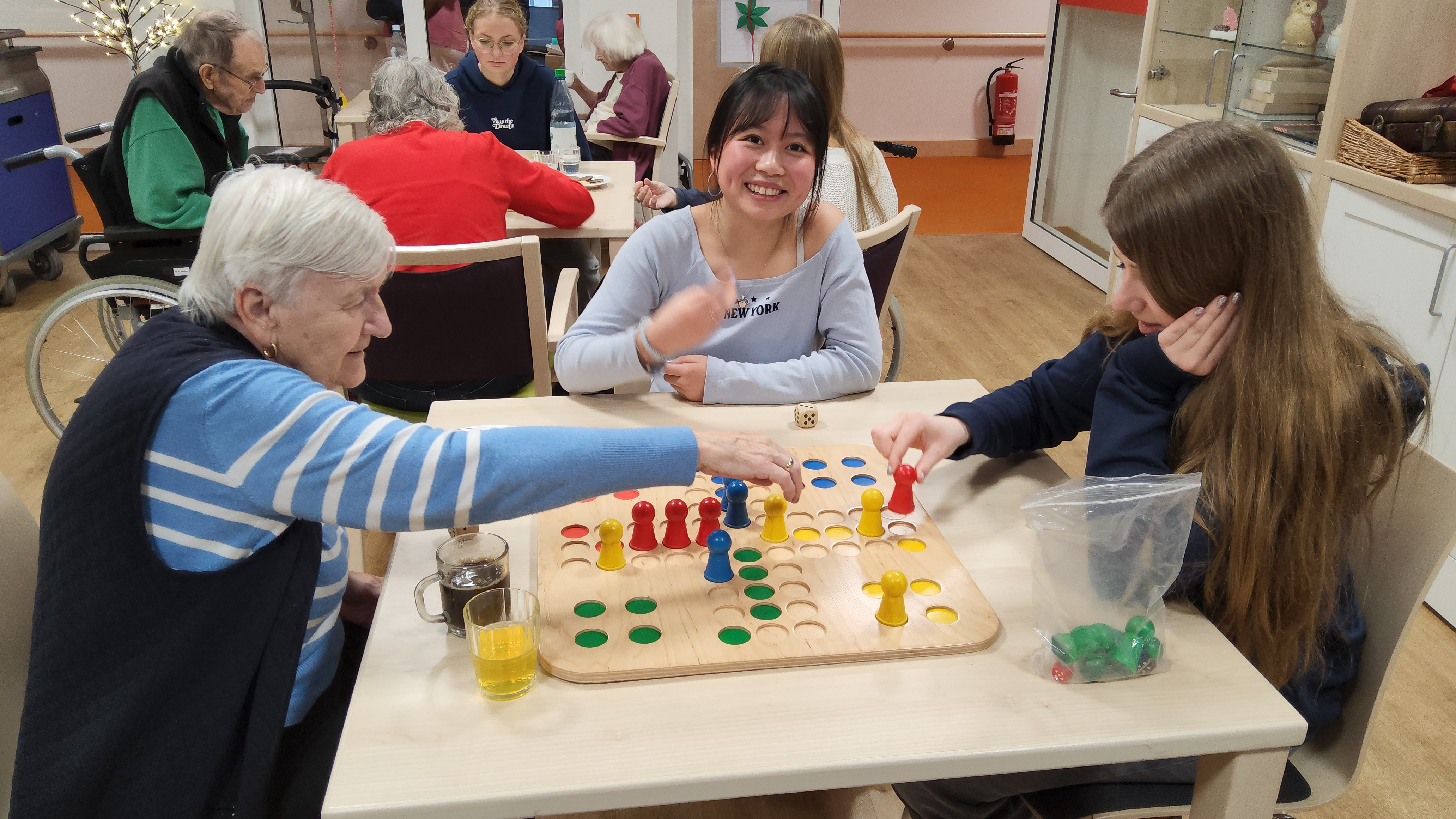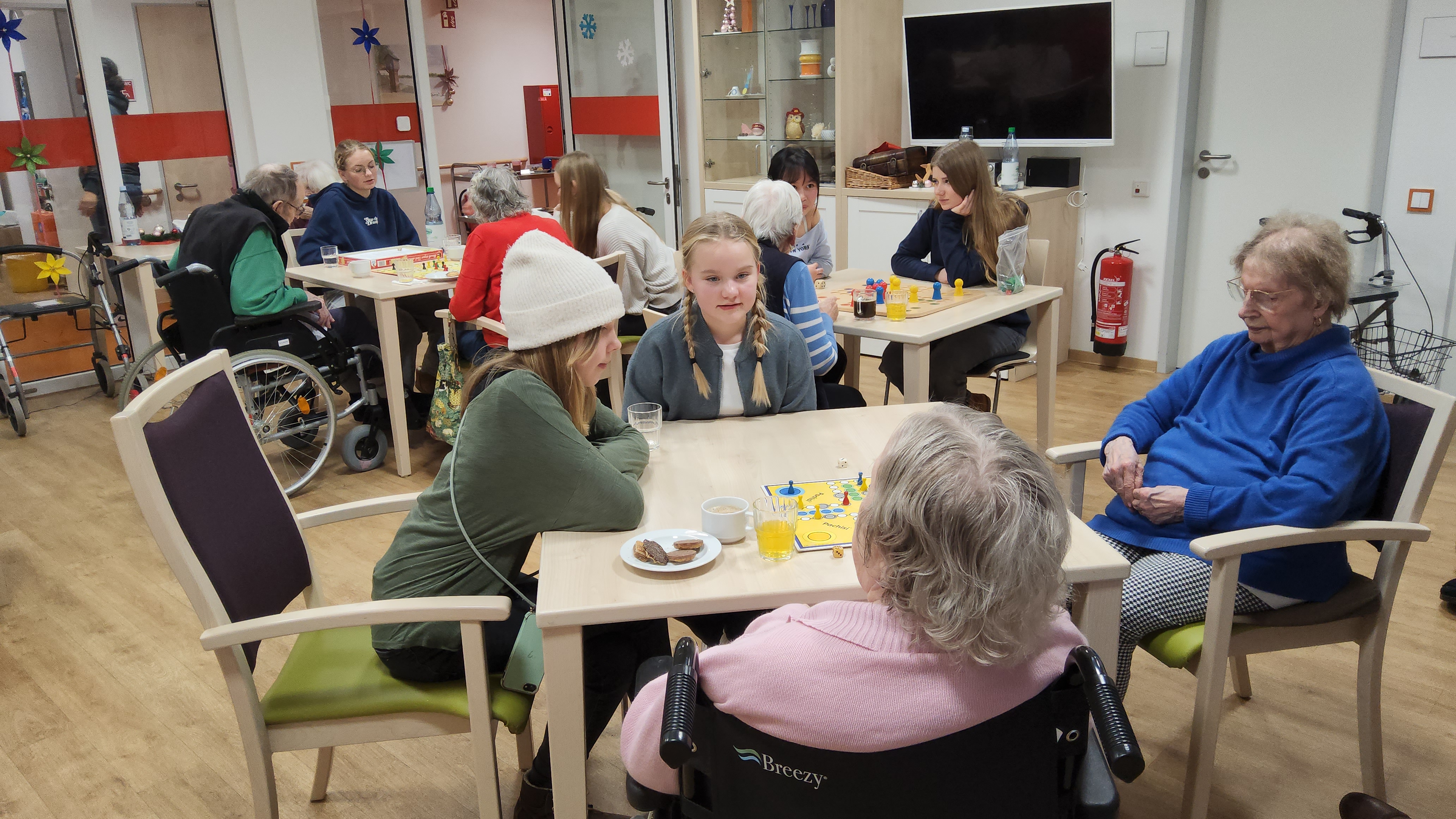 Die Sozial AG war kurz vor Weihnachten in einem Lohbrügger Seniorenheim und hat dort für die Bewohner einen wunderschönen Adventsnachmittag gestaltet. Es wurden Spiele an Tischen organisiert und teilweise von den SchülerInnen erklärt: u.a. Uno, Mensch ärgere dich nicht und Mühle. In zwei Küchen des Hauses haben unsere SchülerInnen verschiedene Kekse für und teilweise sogar mit den Senioren gebacken. Der Nachmittag endete mit den gemeinsamen Singen mehrerer Weihnachtslieder. Das Personal des Wohnheimes und vor allem die Senioren waren voll des Lobes!